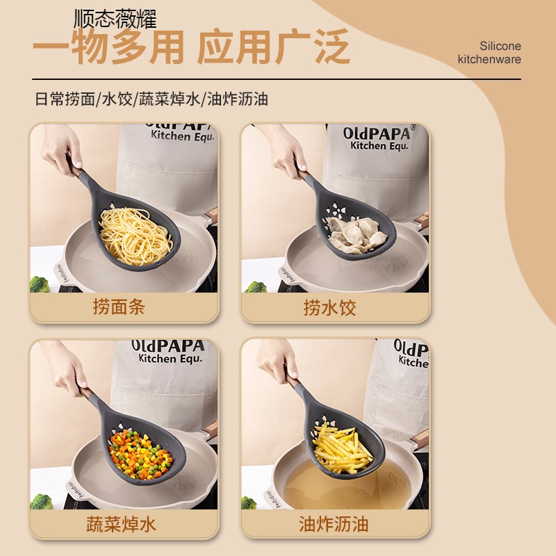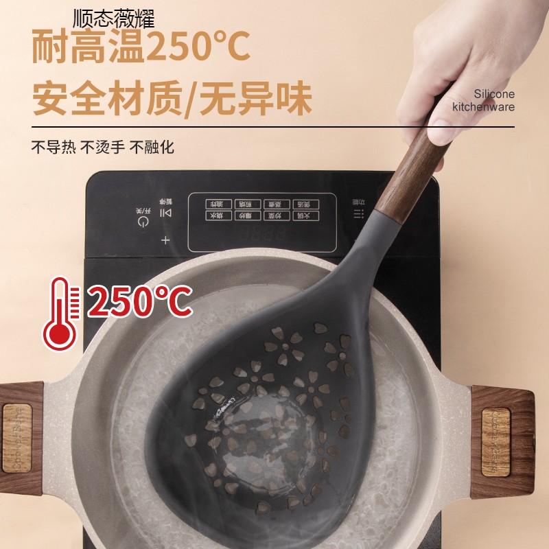 硅胶漏勺耐高温不粘锅厨房家用木柄漏勺多用捞面捞鸡蛋厨具