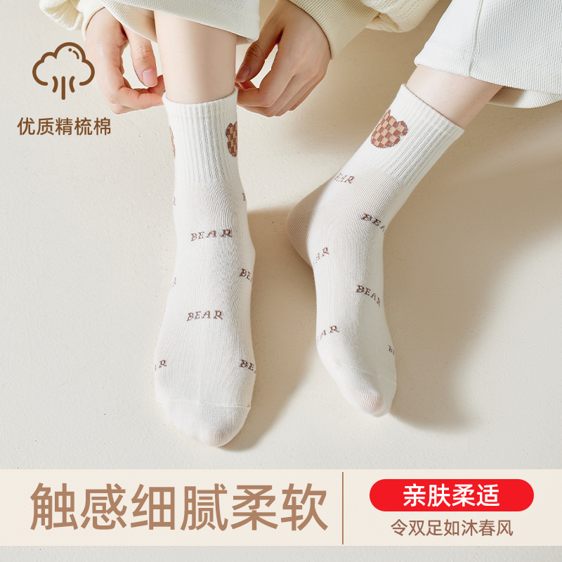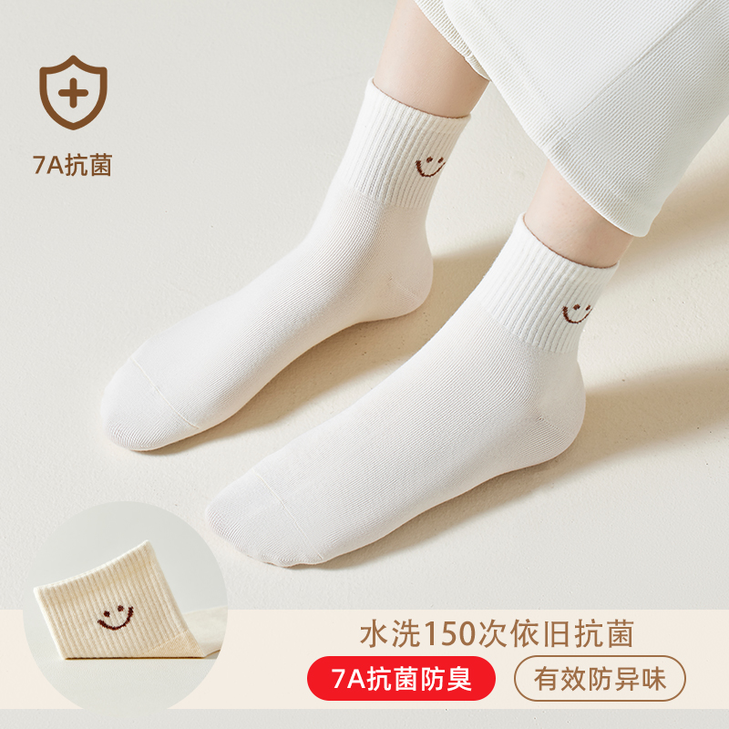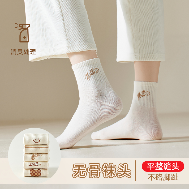 浪莎白色女士袜子春夏款 无骨袜 中筒袜纯棉防臭棉袜抗起球女袜新款