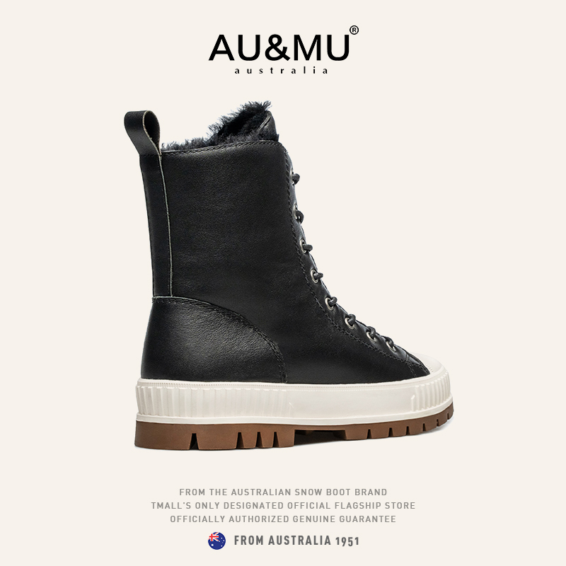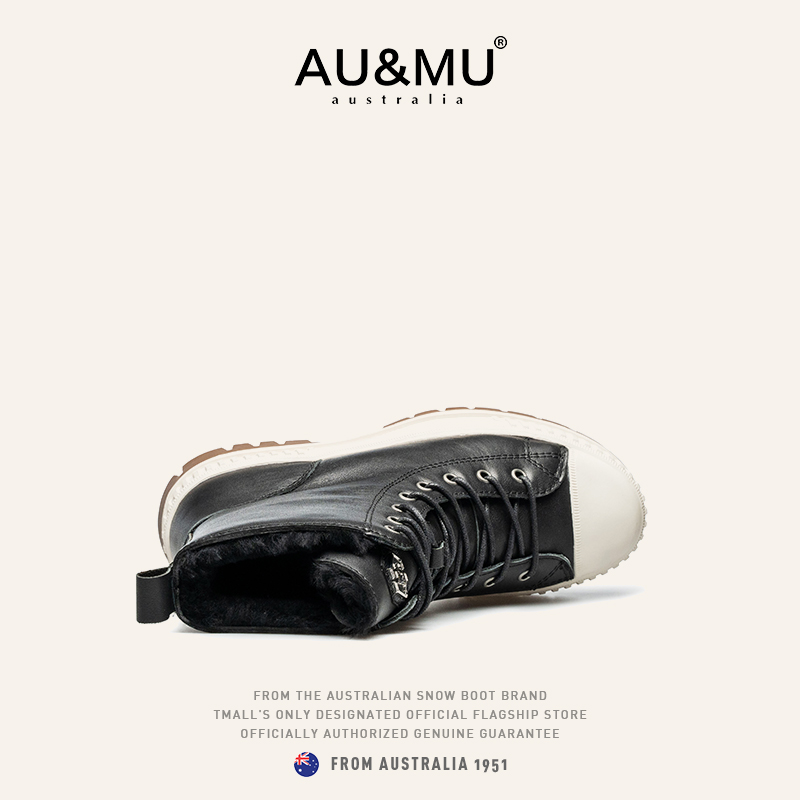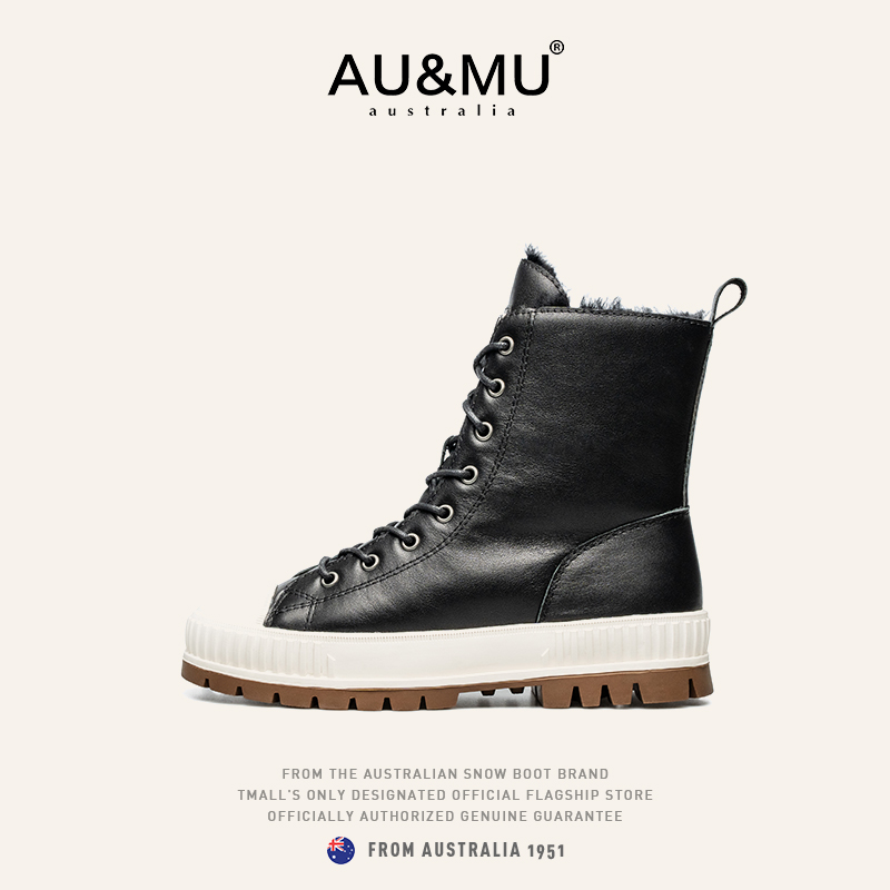AUMU2025冬季 雪地靴女皮毛一体真皮防水加绒保暖防滑马丁靴女 新品