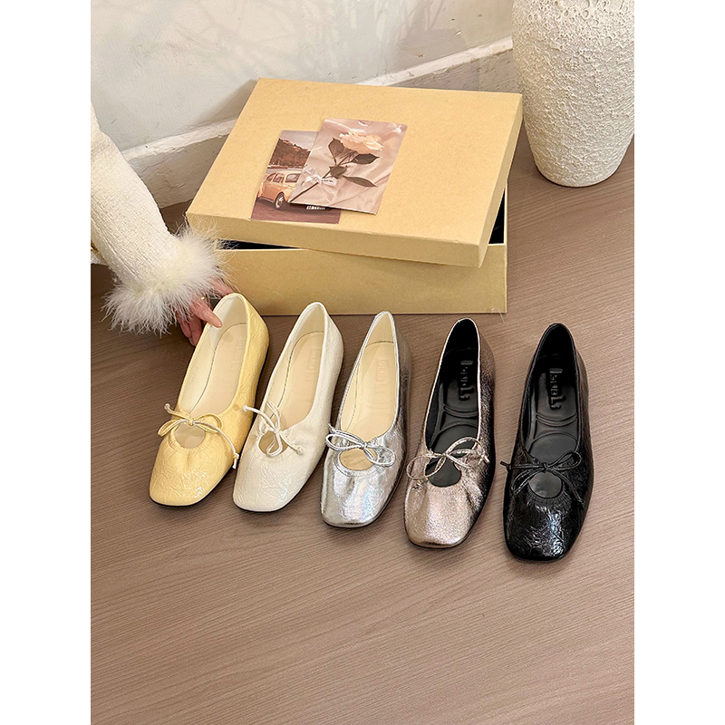 通勤浅口软底褶皱芭蕾玛丽珍鞋 气质圆头蝴蝶结平底单鞋 女2025春季