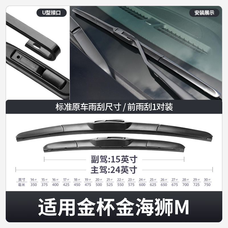 适用华晨金杯金海狮M经典 无骨胶条配件雨刷片 雨刮器鑫源汽车原装