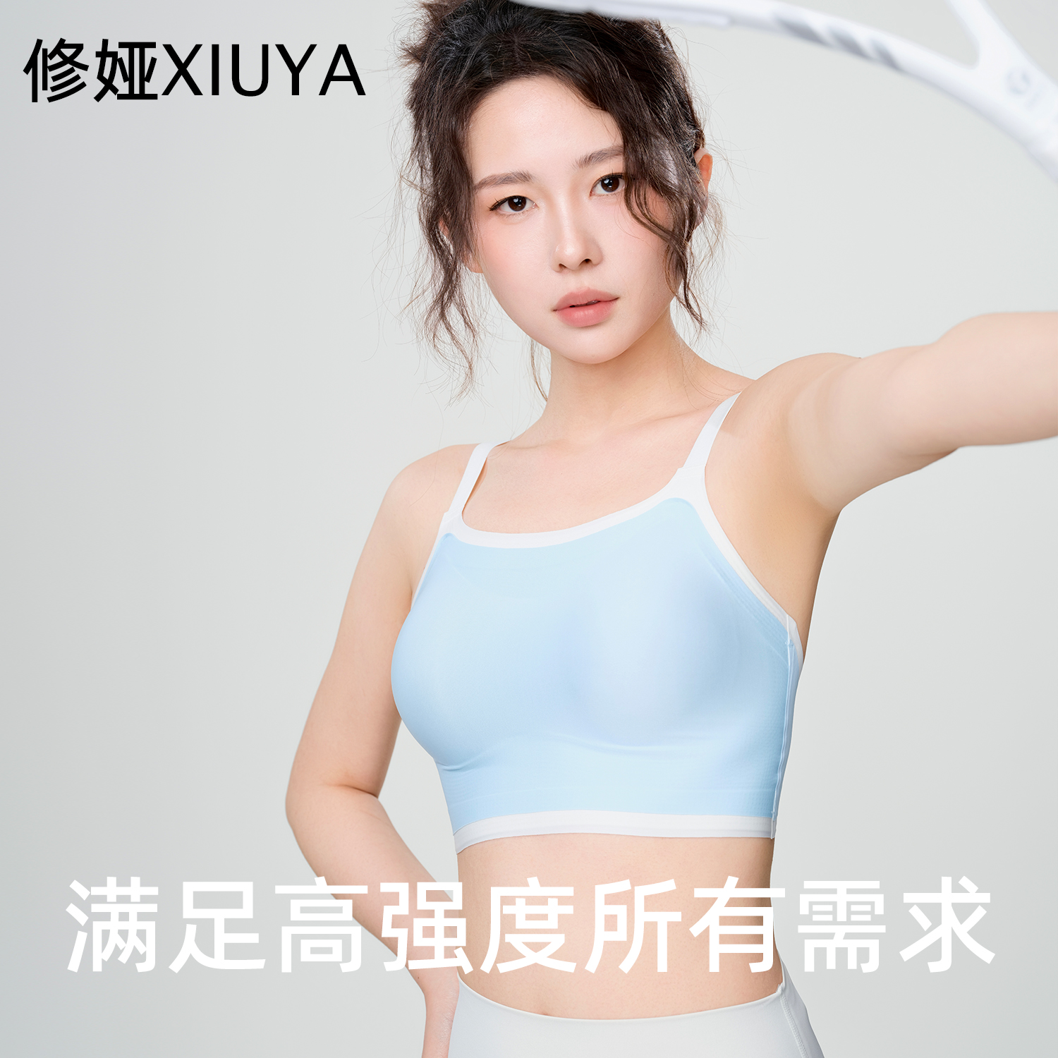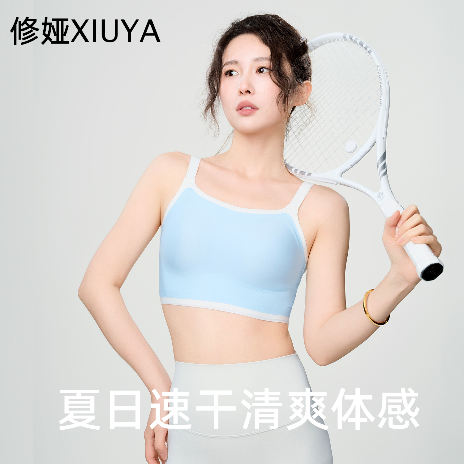 修娅春夏美背运动瑜伽健身细肩带可调节撞色背心式 防震无痕文胸