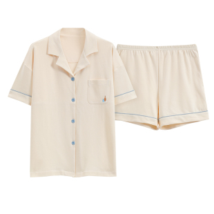 休闲家居服女士套装 猫人带胸垫睡衣女2025年新款 短裤 纯棉短袖 夏季