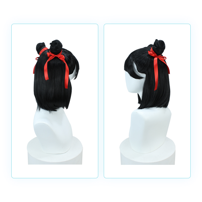 哪咤儿童假发幼年版 哪吒cos假发 黑色双丸子头仿真头皮顶玫瑰内网