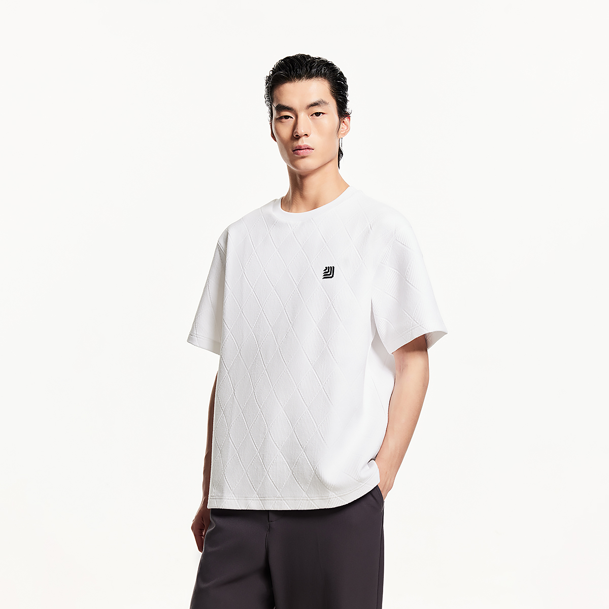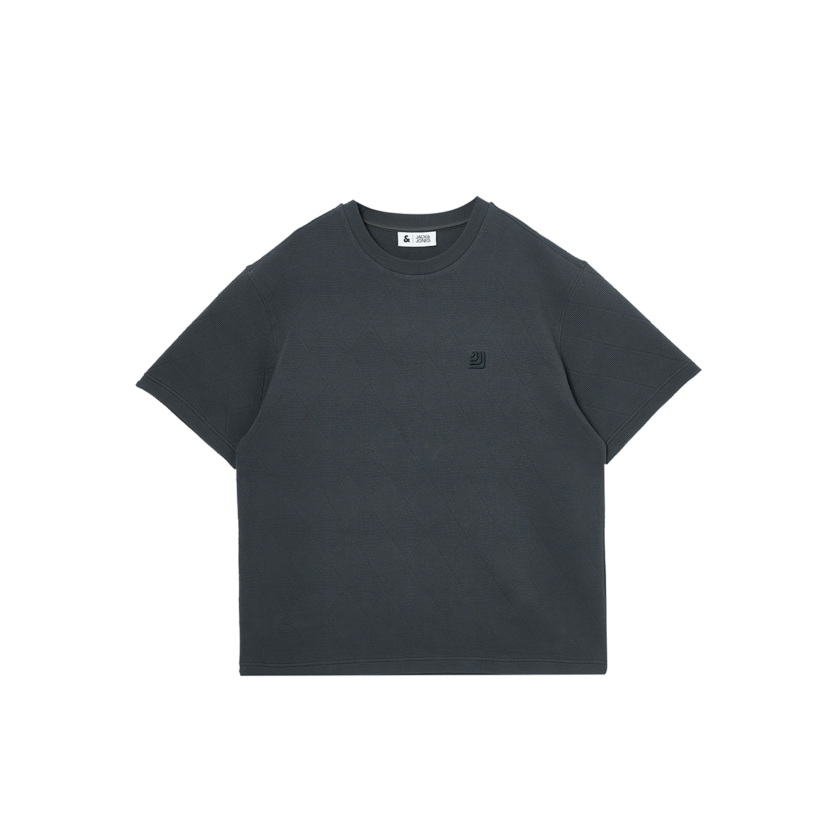 新款 男装 格纹织花logo刺绣休闲宽松男士 T恤男款 短袖 杰克琼斯夏季