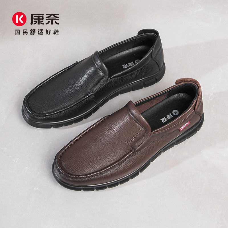轻便一脚蹬套脚乐福鞋 商务休闲软底软面皮鞋 2025春秋新品 康奈男鞋