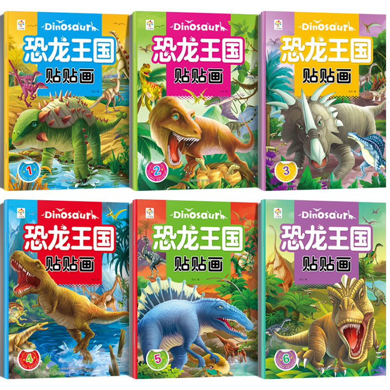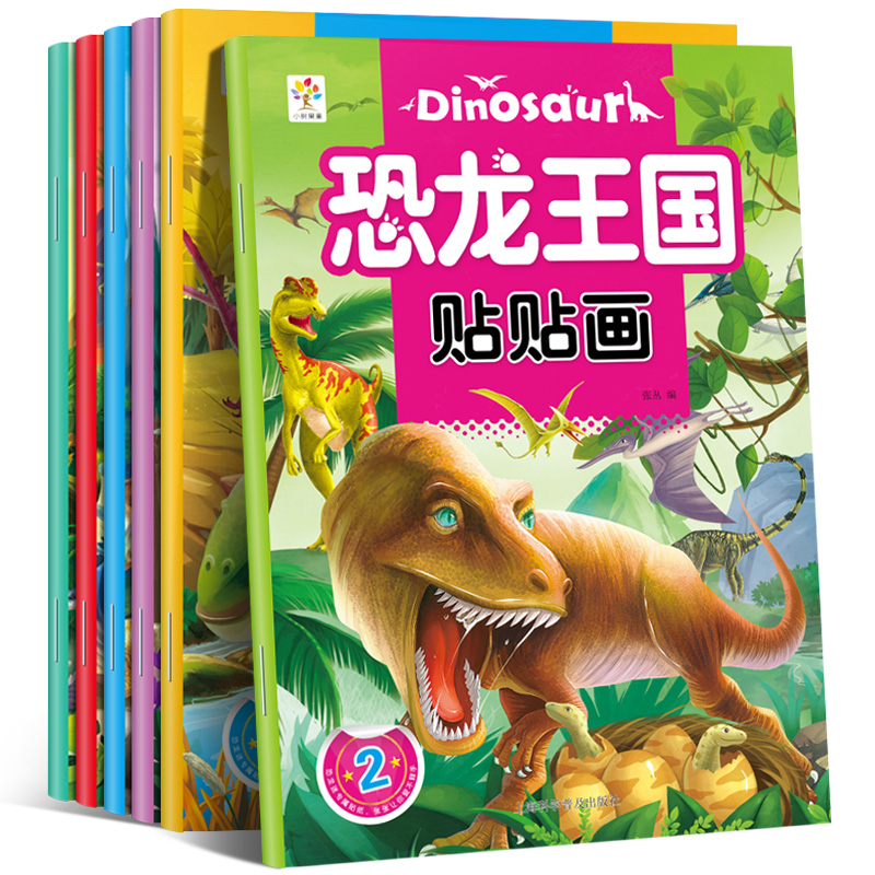 6岁卡通益智全脑开发趣味贴贴画幼儿园宝宝卡通奇趣世界专注力训练粘贴画早教启蒙书籍 恐龙王国贴贴画全套6册儿童恐龙贴纸书2