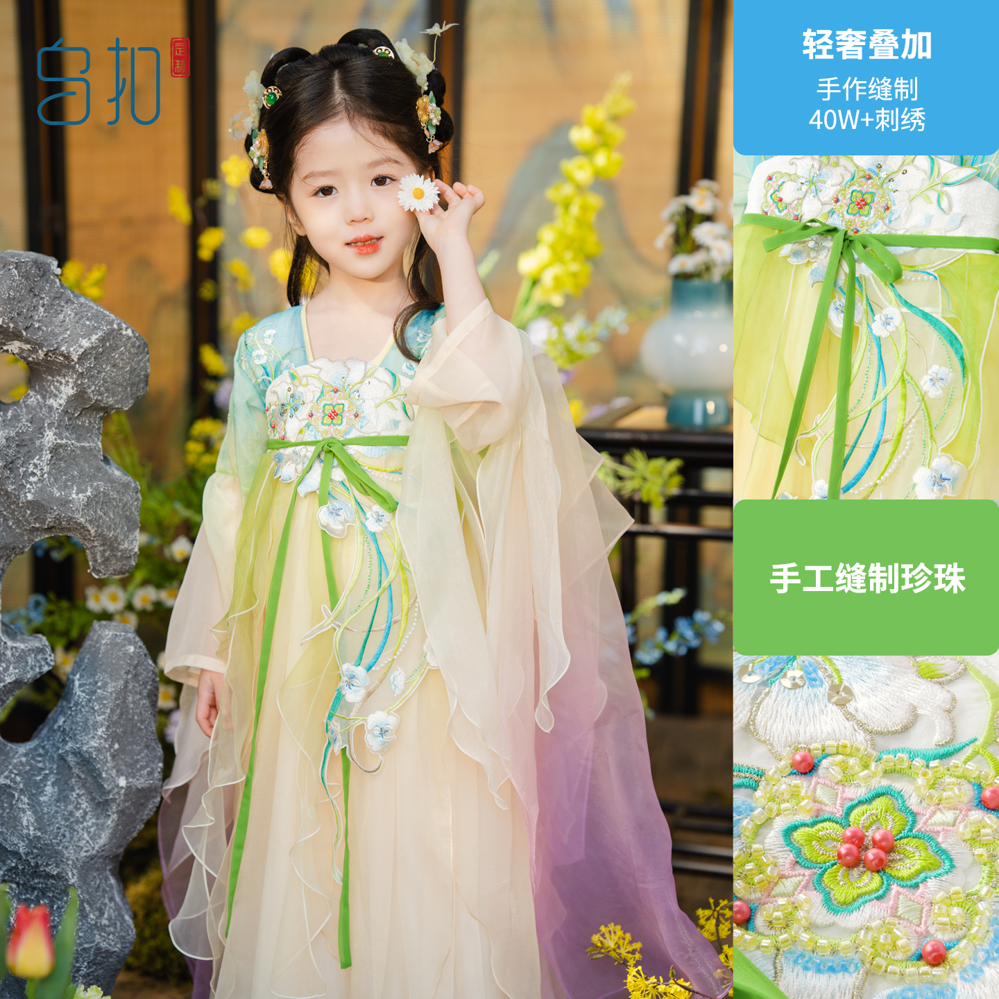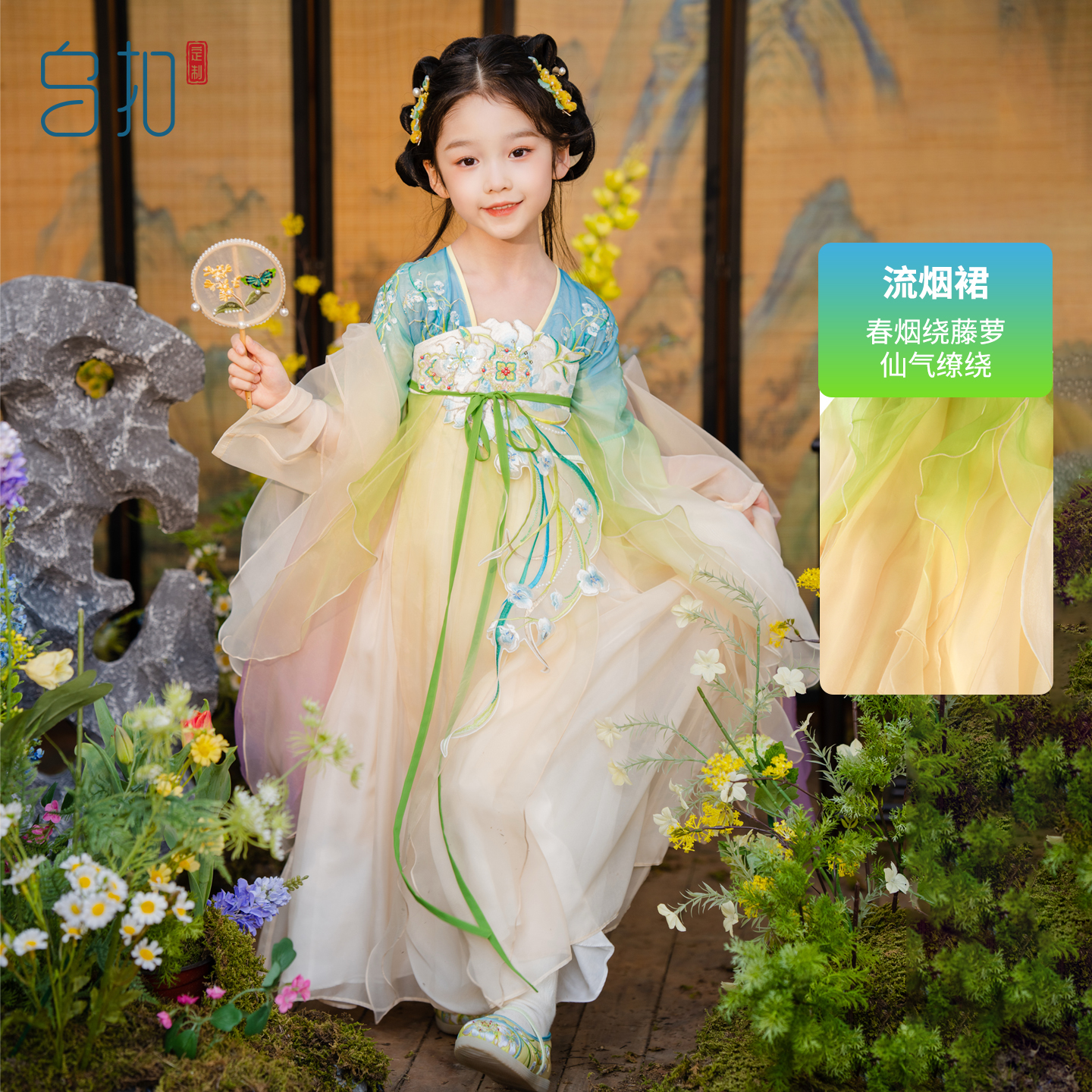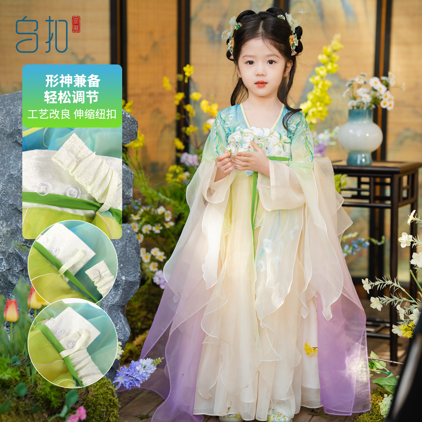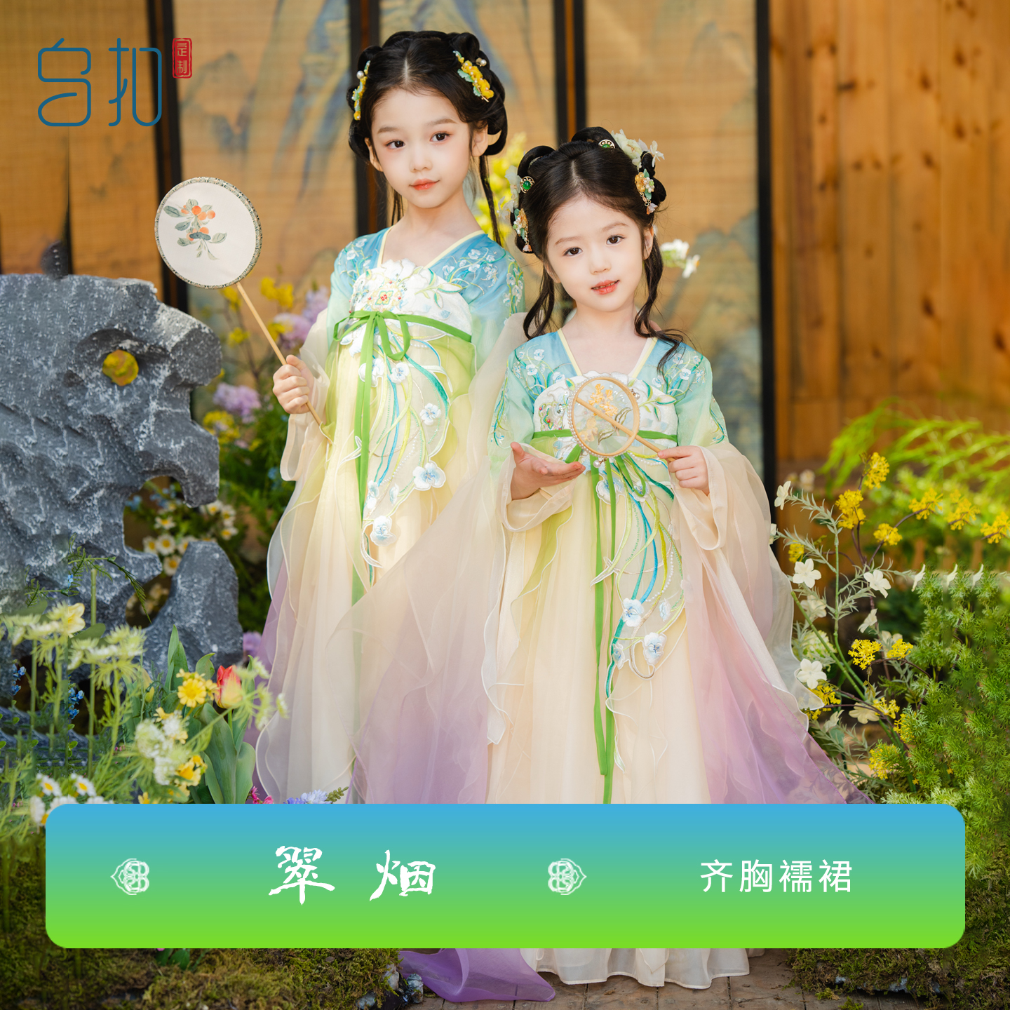 中秋节古风连衣裙秋季 长袖 女童汉服春秋儿童中国风古装 乌扣.翠烟