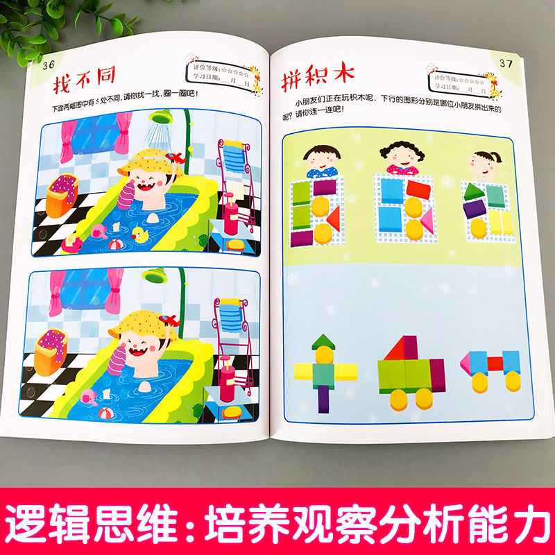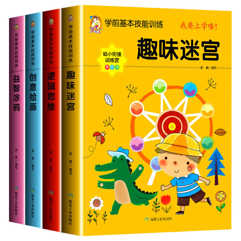 学前基本技能训练全套4册幼儿逻辑思维训练书益智涂鸦趣味迷宫找不同宝宝创意绘画图色书幼儿园大班升一年级启蒙认知书入学准备书