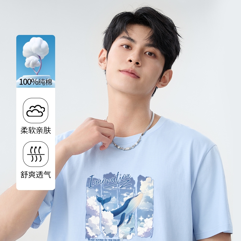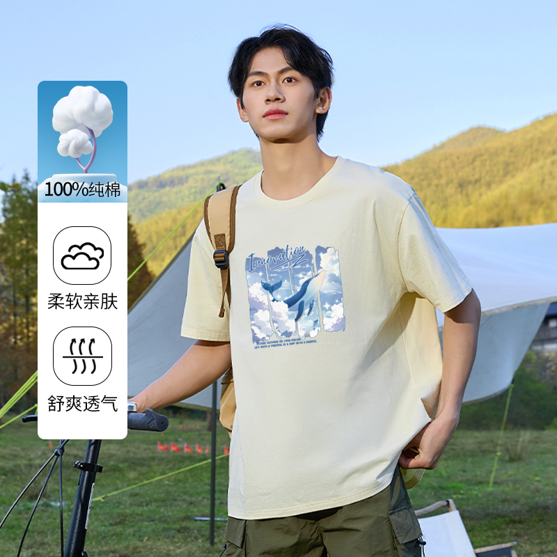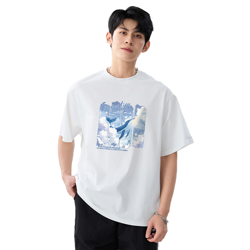 2025夏季 情侣装 新款 云海鲸印花T恤衫 班尼路短袖 宽松半袖 男女同款