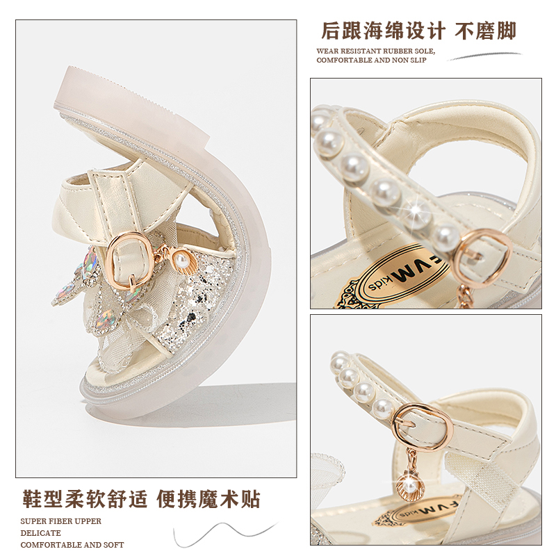 子儿童公主凉鞋 爆款 2025新款 夏款 宝宝洋气水晶沙滩 夏季 fvm女童鞋