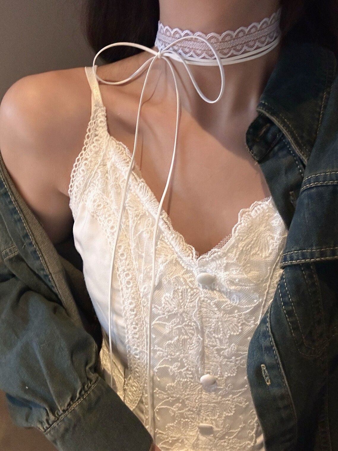 甜酷辣妹黑色蝴蝶结蕾丝绑带项链叠戴choker锁骨链复古设计感飘带
