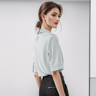 衬衣时尚 璐丝百丽独特别致衬衫 气质上衣雪纺五分袖 女夏季 2025新款