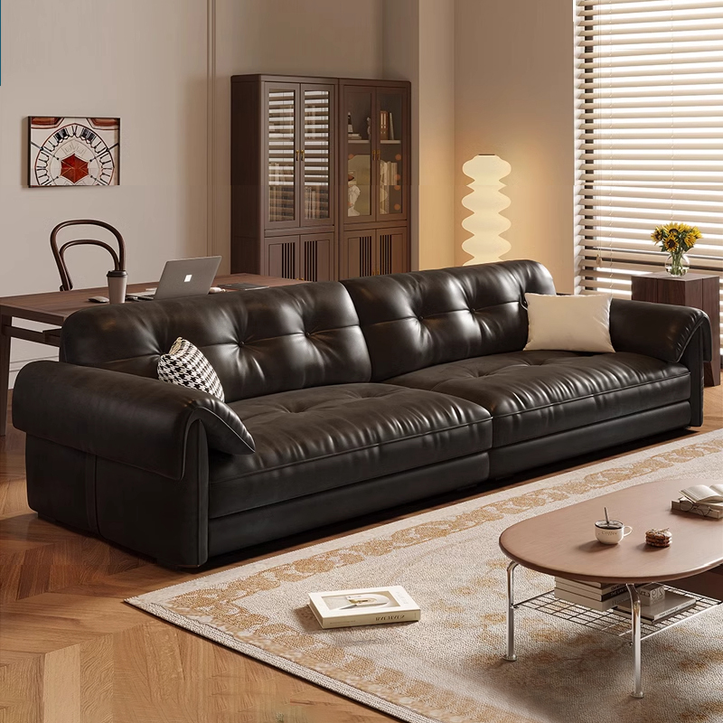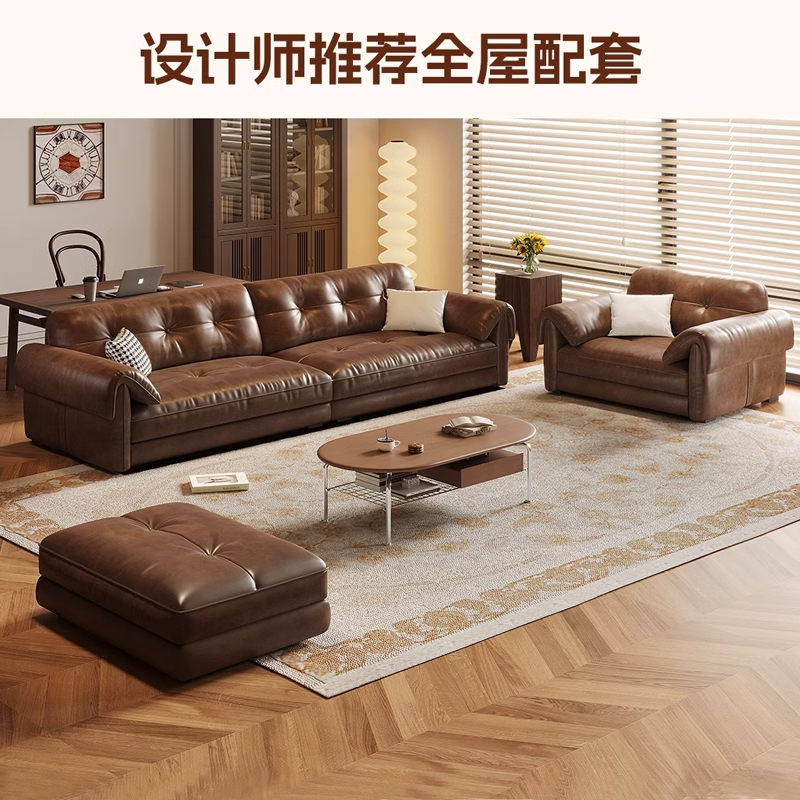 中古风真皮沙发小户型客厅头层牛皮复古四人位沙发2025国家补贴款