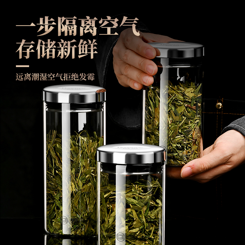 茶叶罐储存密封罐精品高档真空玻璃食品级装 小号便携收纳防潮盒子