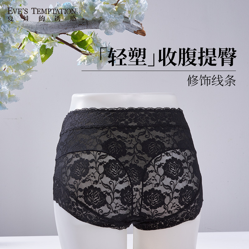 诱惑夏季 夏娃 薄款 蕾丝中高腰轻收腹提臀内裤 168 女平角短裤 2条