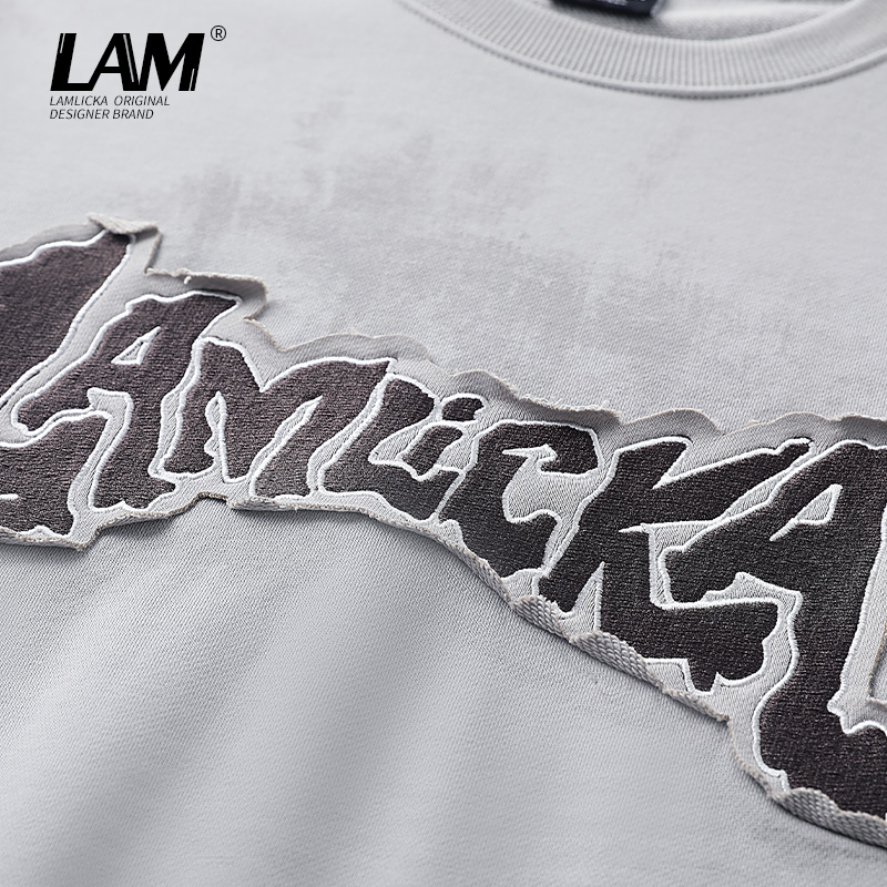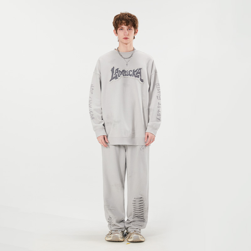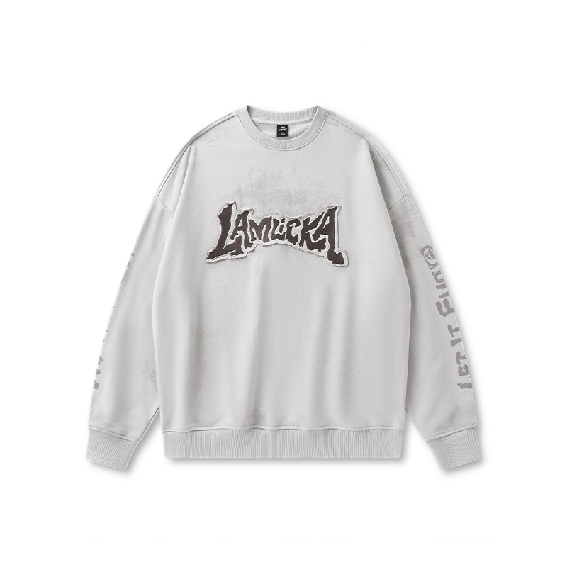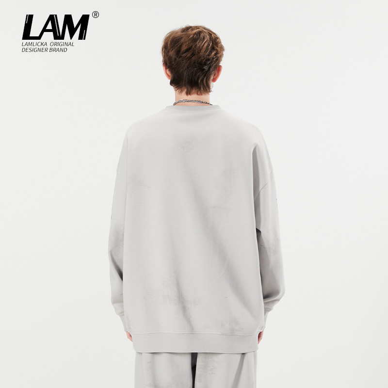 LAMLICKA美式 做旧字母印花圆领卫衣男复古潮街头套头廓形上衣宽松