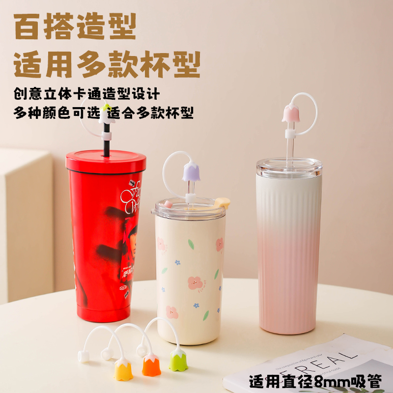 8mm铃兰花吸管帽吸管防尘塞适用星巴克吸管塞网红硅胶吸管套配件