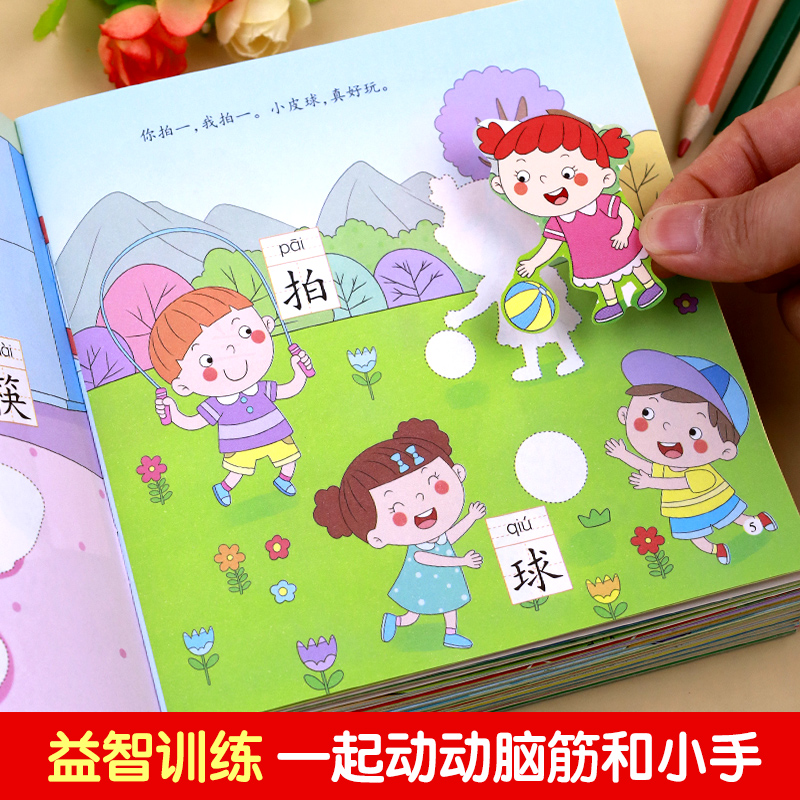 儿童益智全脑逻辑思维游戏训练幼儿园书籍 5岁粘贴纸早教绘本 宝宝贴贴画1 0到3岁到6岁启蒙认知书 专注力识字游戏贴纸书全8册
