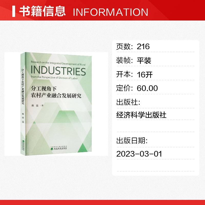 各部门经济经管 励志 新华书店正版 分工视角下农村产业融合发展研究 经济科学出版 著 图书籍 社 熊磊