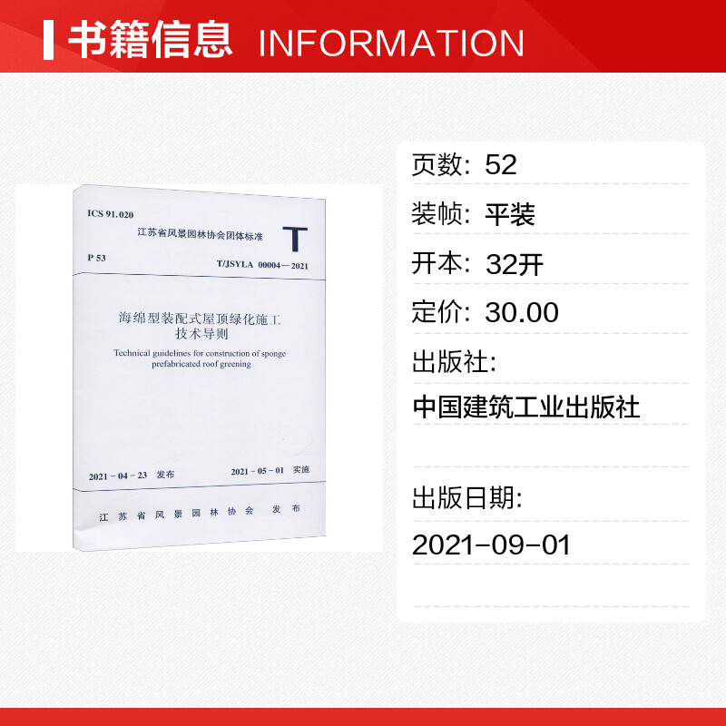新华书店旗舰店文轩官网 社 2021 正版 00004 屋顶绿化施工技术导则 JSYLA 中国建筑工业出版 海绵型装 书籍 配式