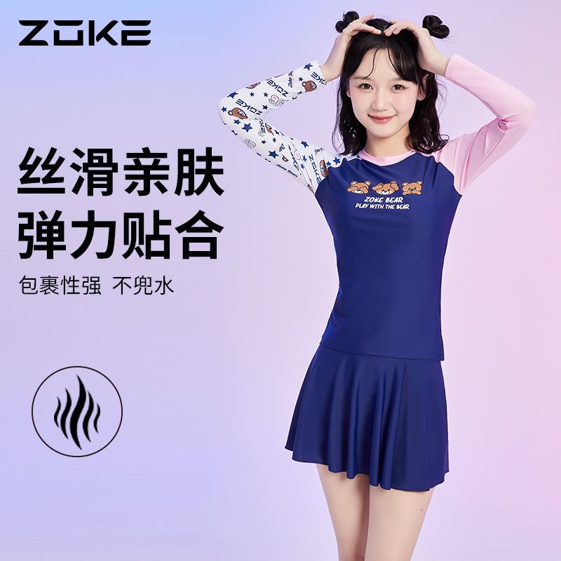 洲克儿童泳衣连体裙摆平角青少年分体防晒zoke大童游泳少女泳衣
