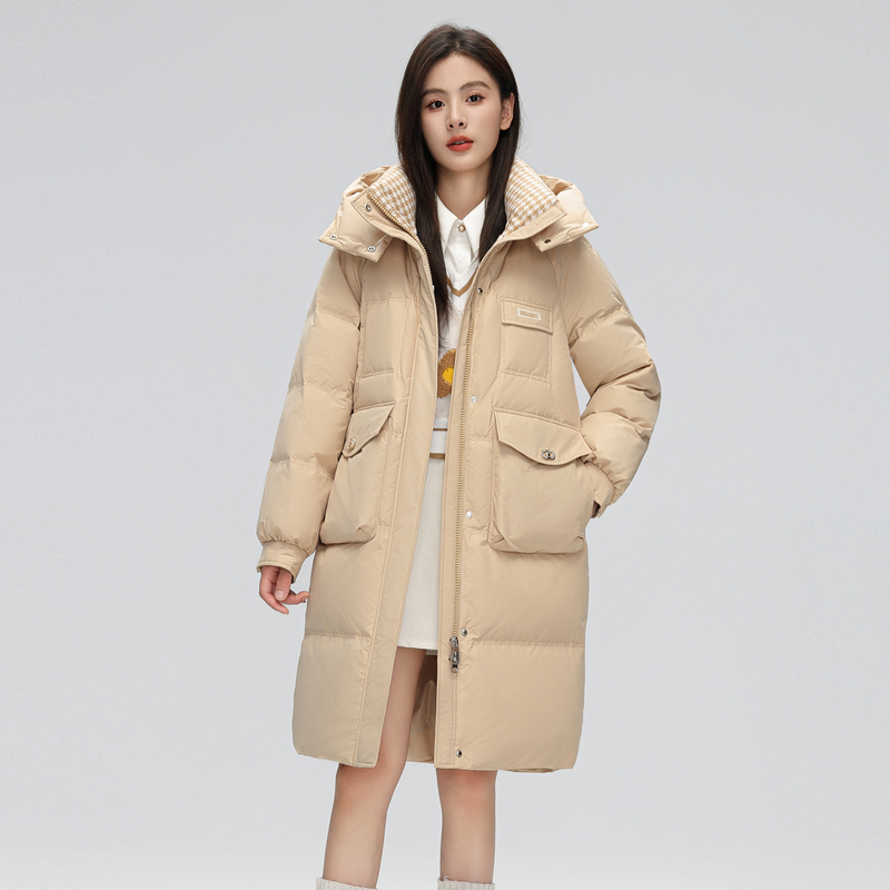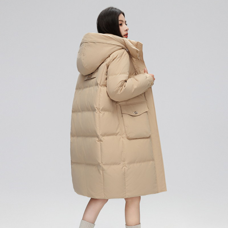 休闲宽松鸭绒厚外套C 连帽时尚 鸭鸭羽绒服女2025年秋冬新品 中长款