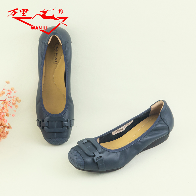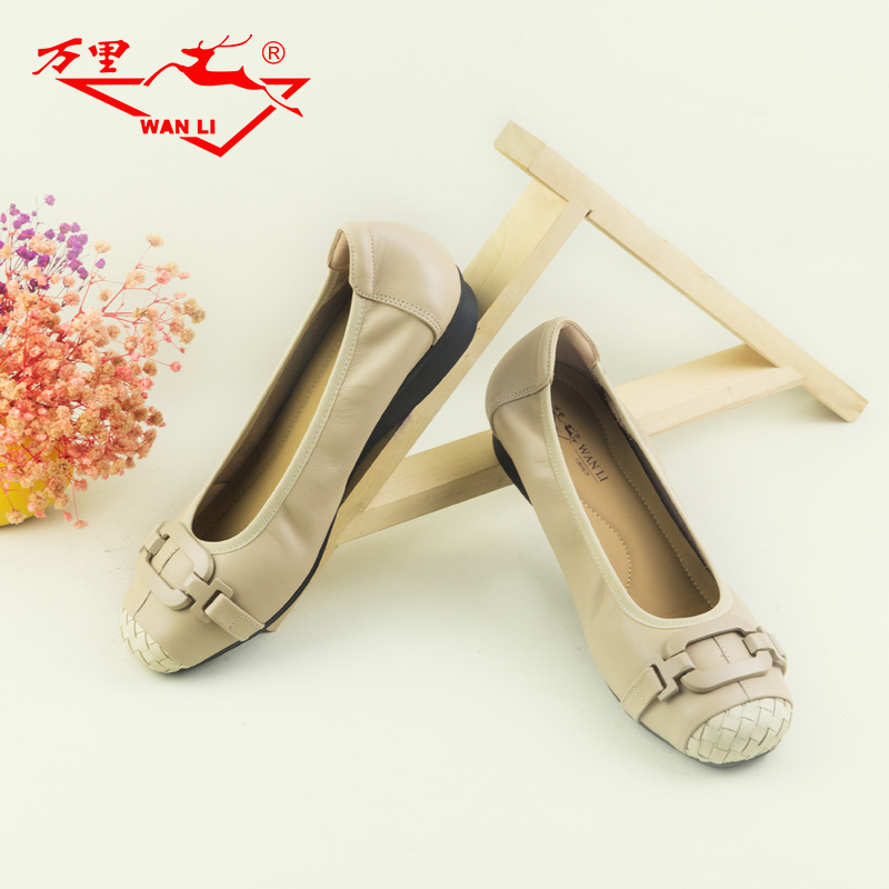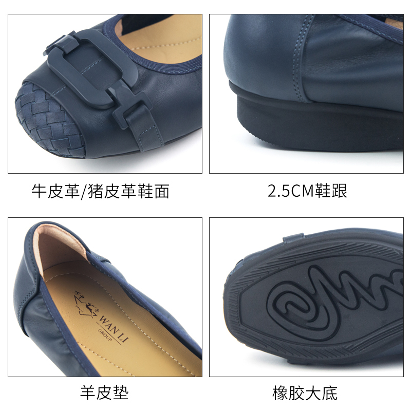 百搭圆头通勤单鞋 舒适套脚休闲鞋 SMT2785 真皮女鞋 万里新款
