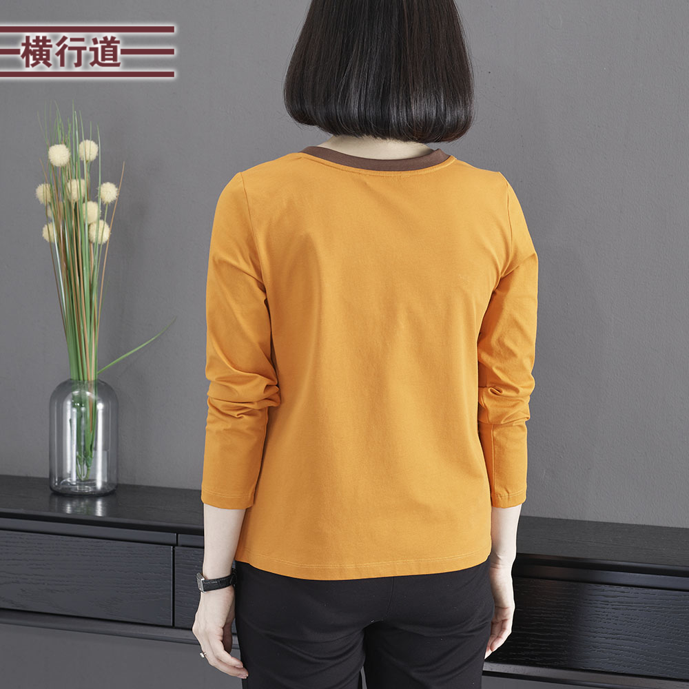 V领绣花修身 长袖 T恤女大码 2025秋季 妈妈装 简约韩版 上衣打底衫 新款