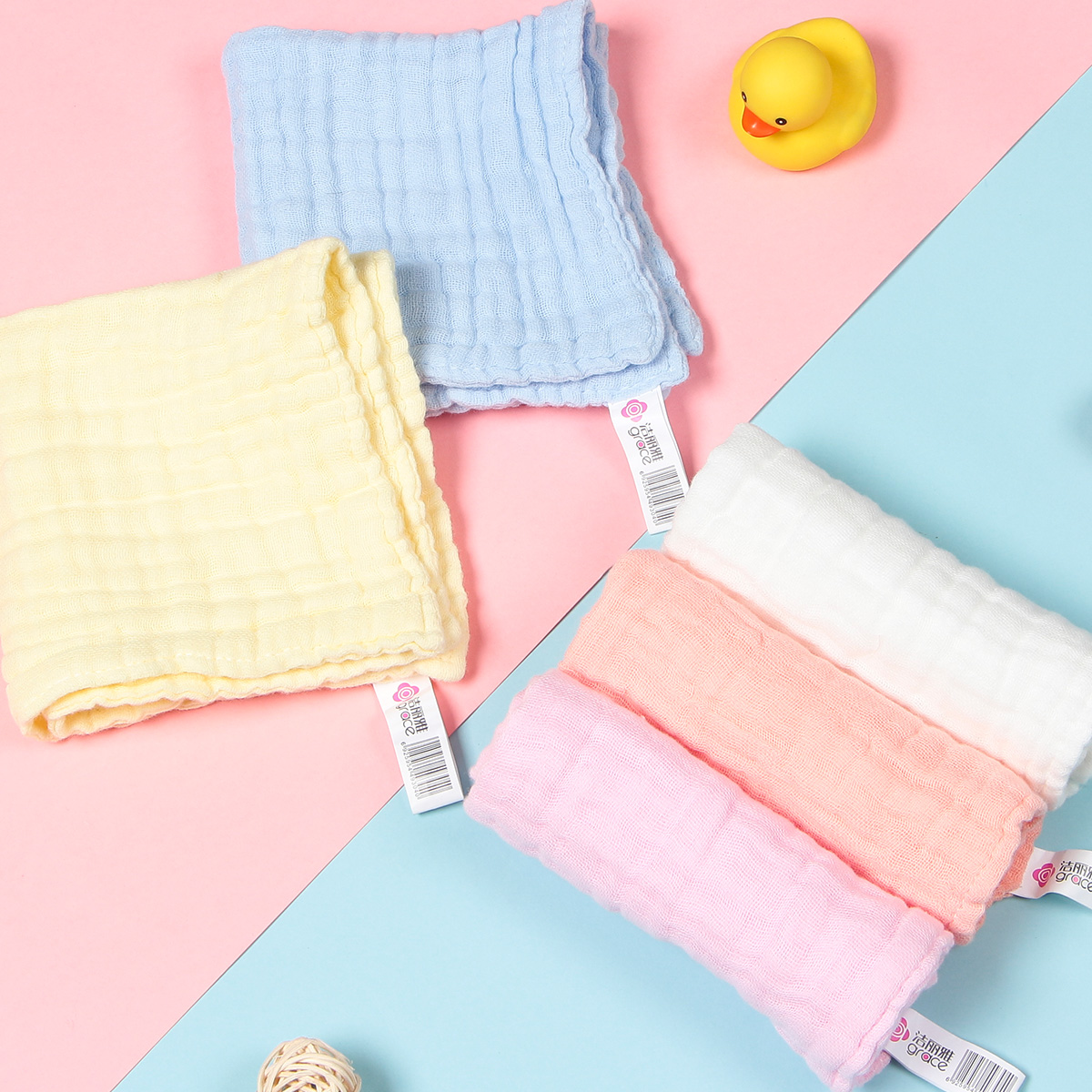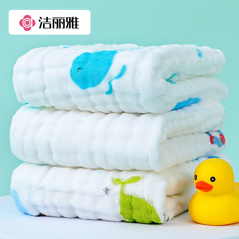 洁丽雅纱布口水巾婴幼儿童专用卡通印花纯色纯棉柔软亲肤纱布毛巾