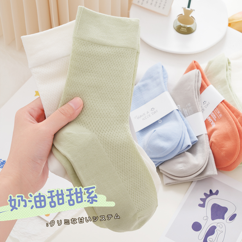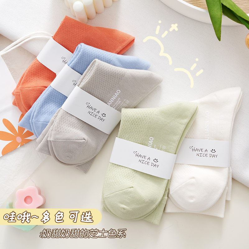 诸暨中筒袜子女夏季 无骨防臭吸汗透气ins潮女长袜子 网眼纯棉薄款