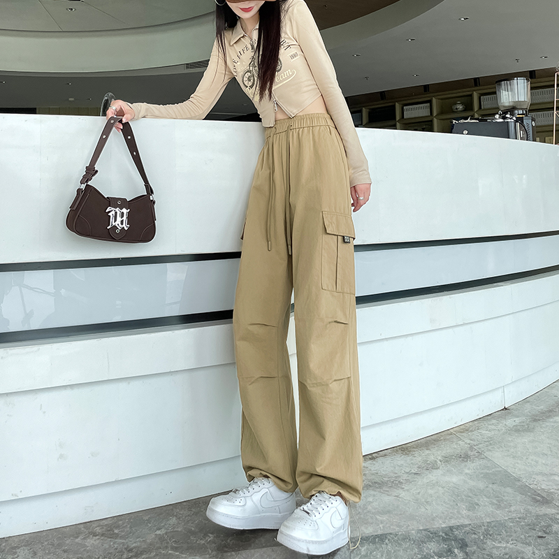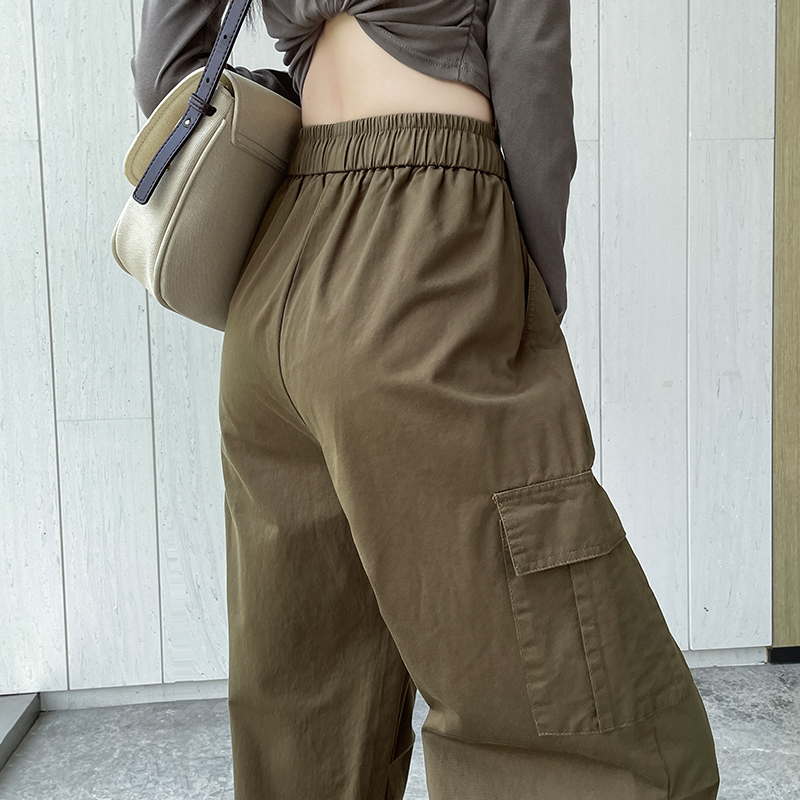 休闲运动灯笼裤 女秋冬加绒加厚高腰显瘦直筒阔腿美式 裤 酒红色工装