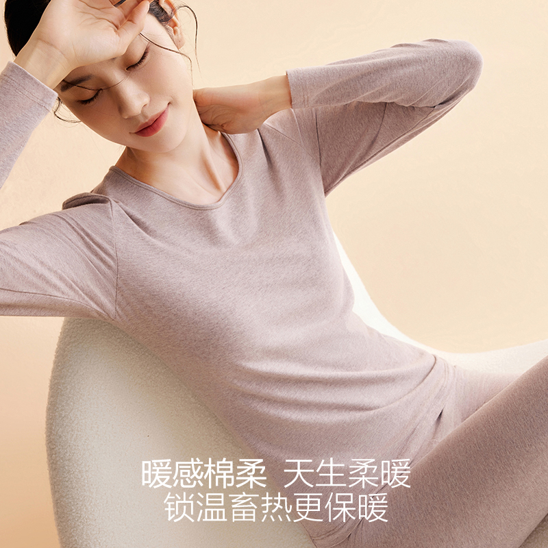 美体修身 套装 棉毛衫 三针保暖内衣女棉柔磨毛圆领秋冬打底秋衣秋裤