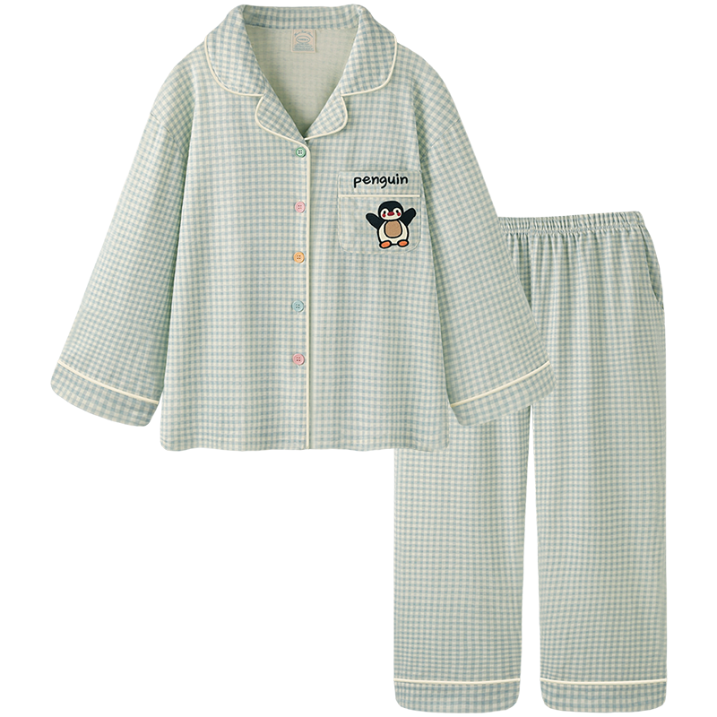 套装 睡衣女款 长裤 长袖 可爱企鹅可外穿女士少女家居服 纯棉春秋新款