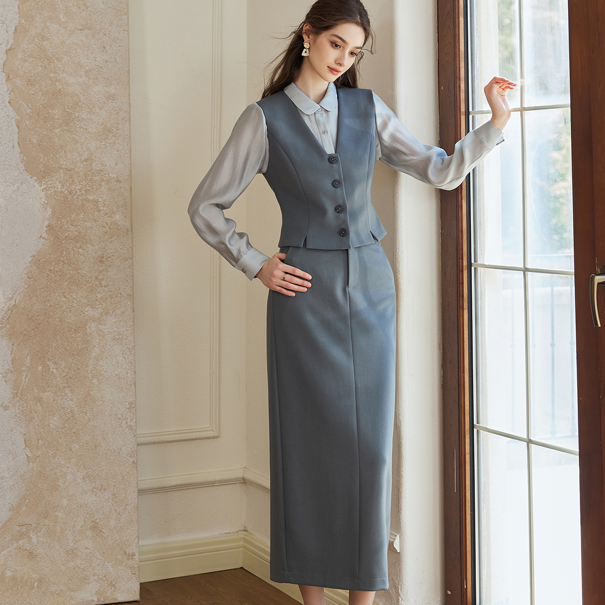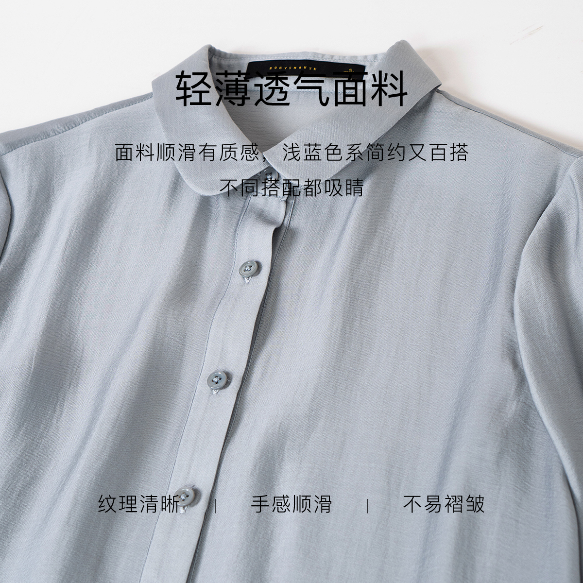 气质浅蓝色衬衣长袖 罗衣法式 新款 2025秋季 内搭上衣11014 轻薄衬衫