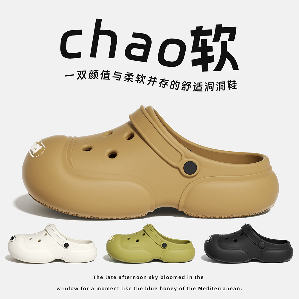 户外防滑沙滩鞋 朴西奶酪情侣厚底踩屎感洞洞鞋 包头拖鞋 夏季 男 女款