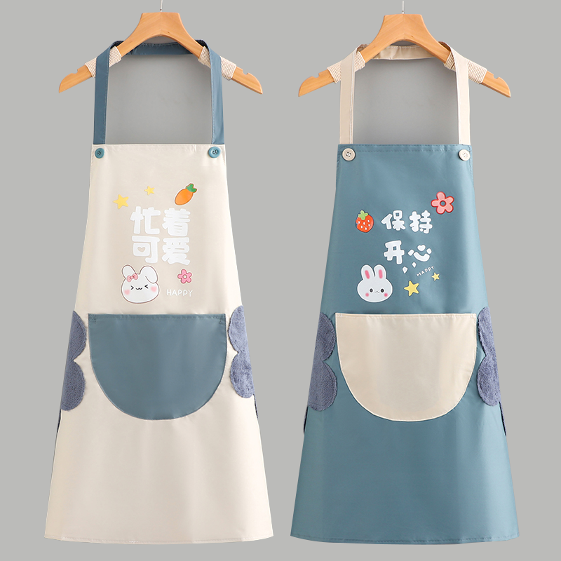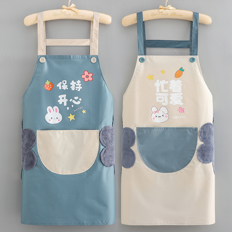 夏季 围裙2024新款 可擦手家用厨房防水防油工作服女围腰专用时尚