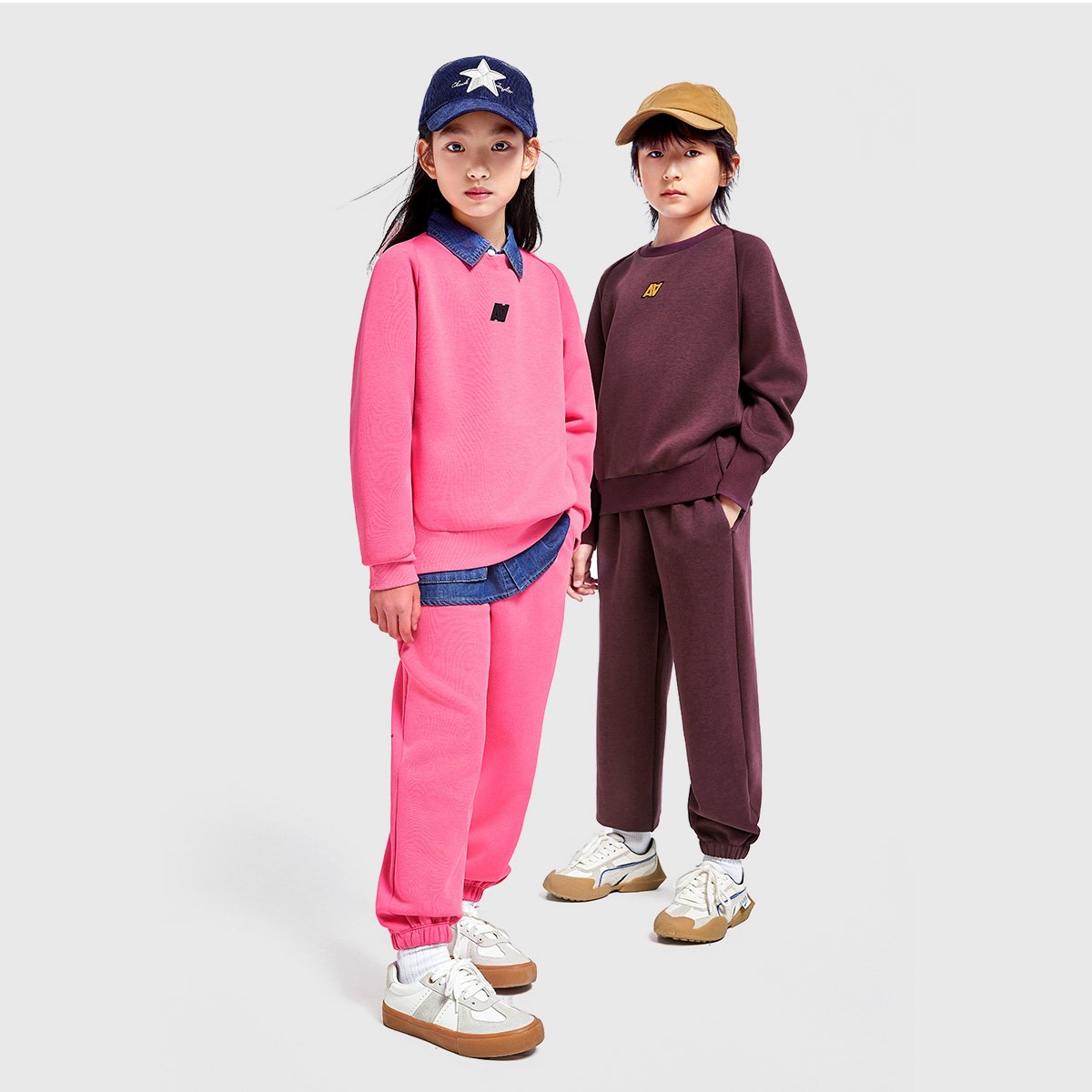 纯色宽松弹力保暖 秋时尚 安奈儿童装 男童女童圆领卫衣套装