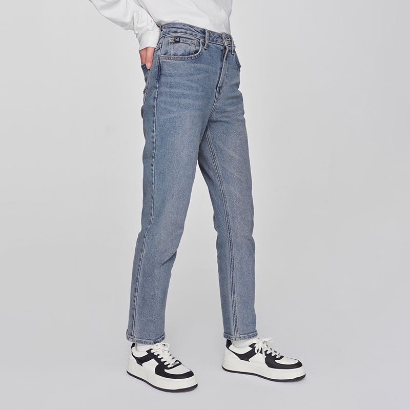 潮流 Lee422标准中腰直脚浅蓝色复古女铆钉牛仔裤 张凌赫代言