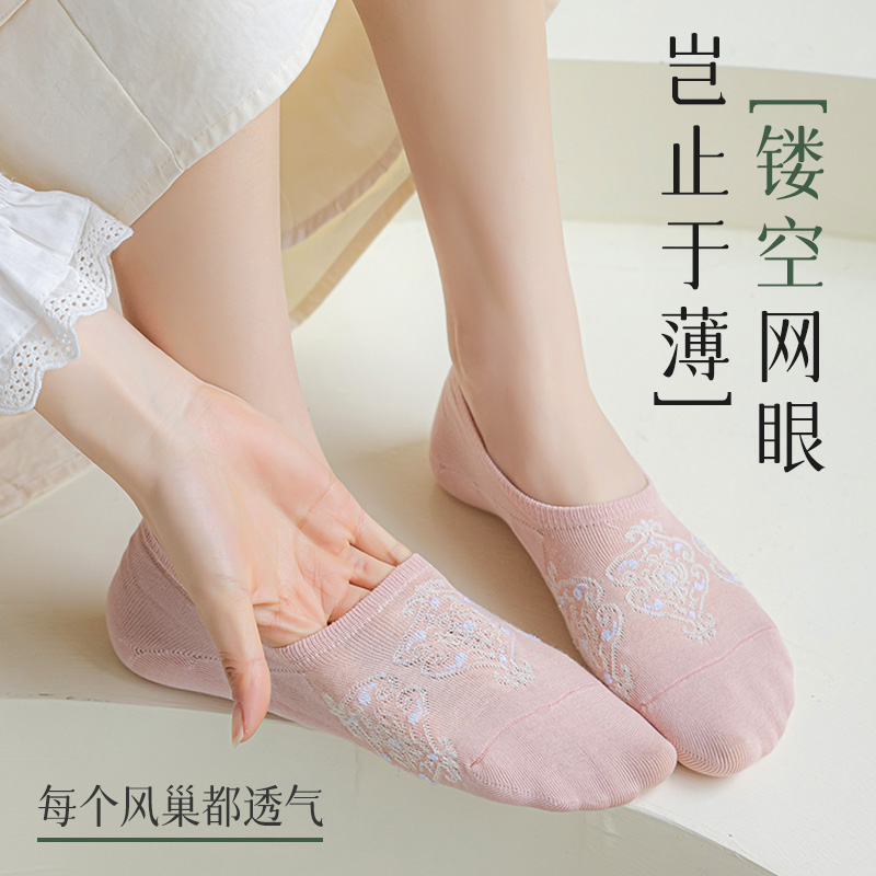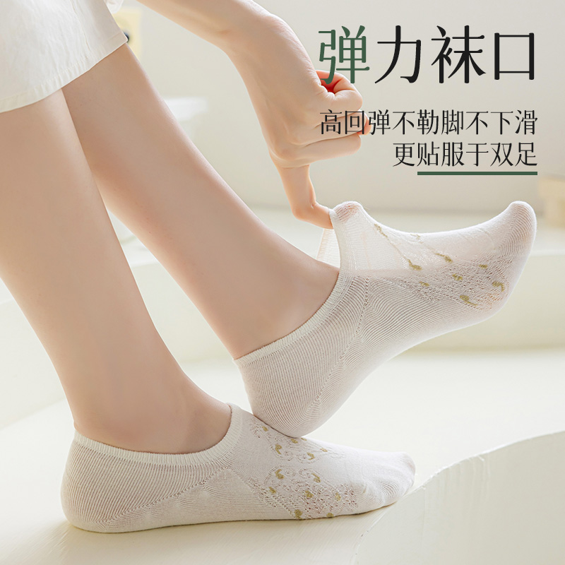 船袜女春夏薄款 纯棉浅口隐形袜防滑不掉跟网眼防臭透气吸汗短袜女