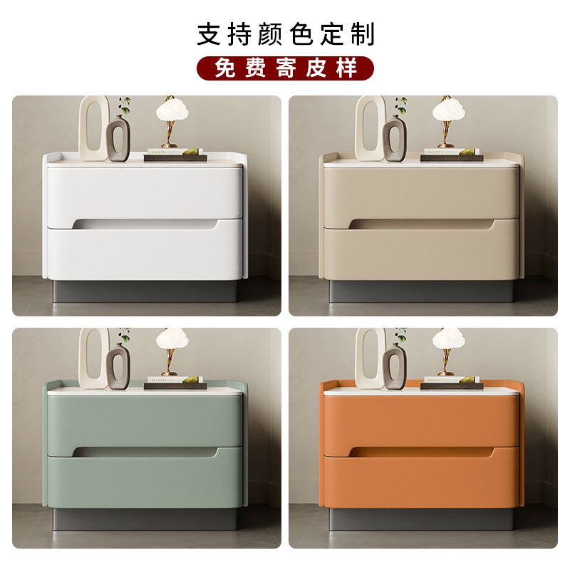访匠轻奢意式 储物柜床边柜 奶油风大户型床头柜实木岩板皮质免安装
