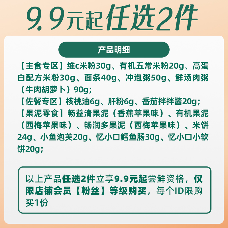 起任选2件专属尝鲜 9.9元 入会 限新客会员粉丝等级购买 0元