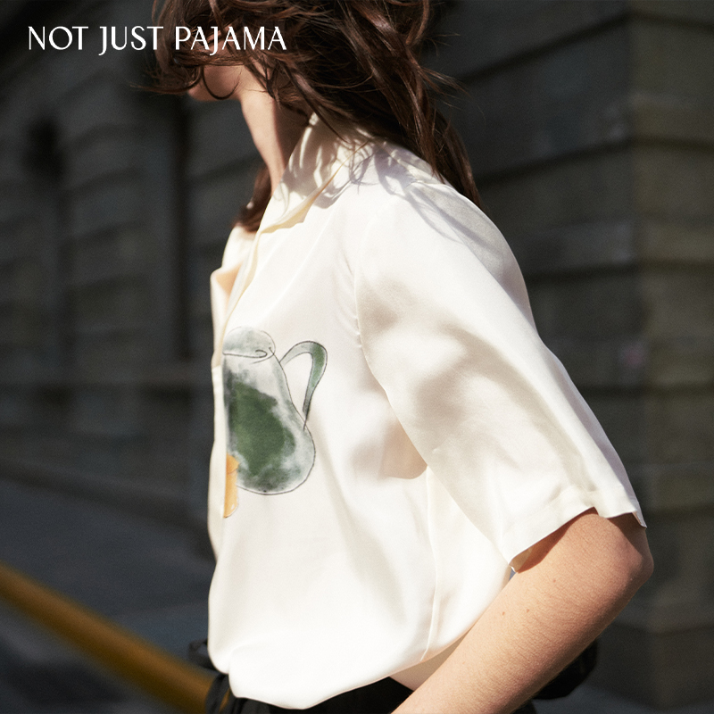Tea Pajama Moments系列夏季 真丝茶壶印花情侣套装 Not 短款 Just