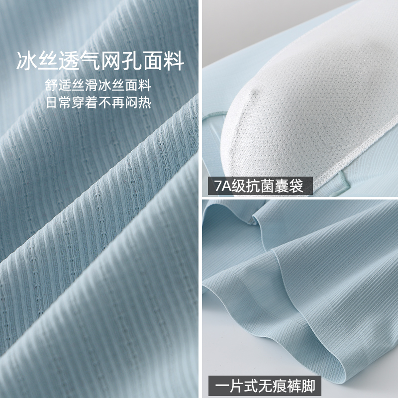 内裤 男夏季 透气无痕抗菌男生四角短裤 平角裤 男款 冰丝网孔男士