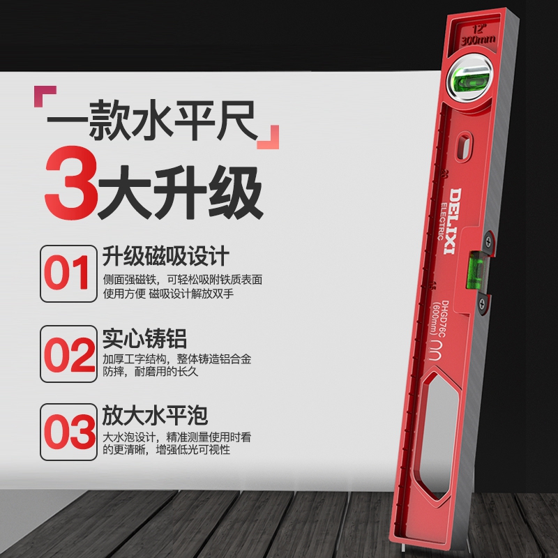 德力西电气高精度水平尺小型带磁强磁多功能实心铸铝抗摔水平仪