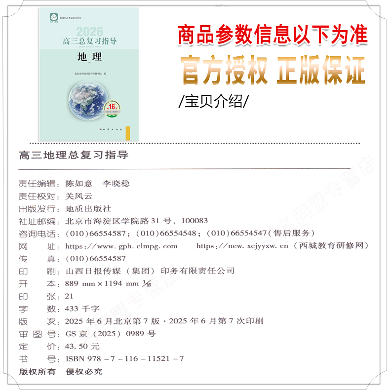 学探诊高中高考高3地理北京市西城教育研修学院 北京西城学习探究诊断 地质 2本套装 2026高三地理总复习指导与测试上册第16版