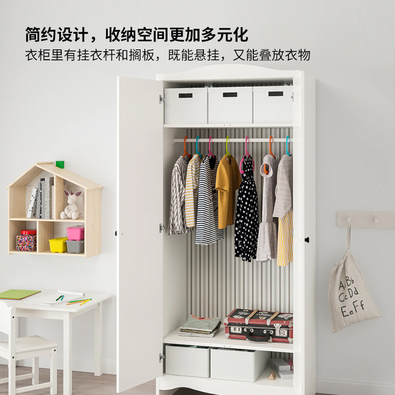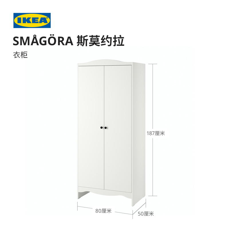 IKEA宜家SMAGORA斯莫约拉衣柜80x50x187白色简约现代儿童房用