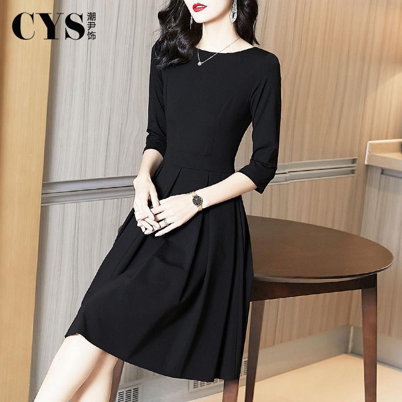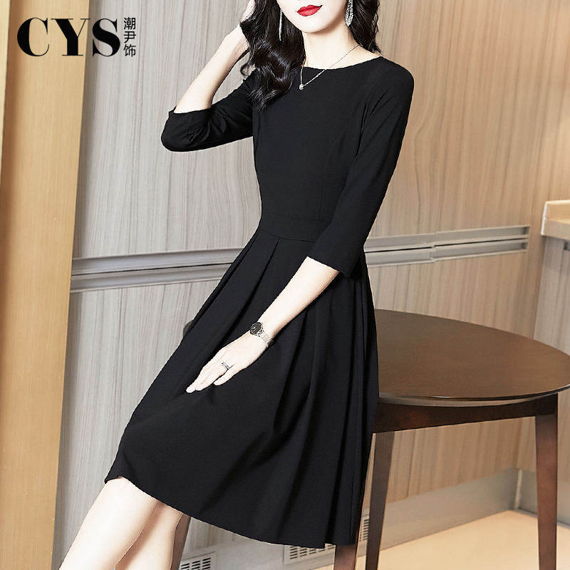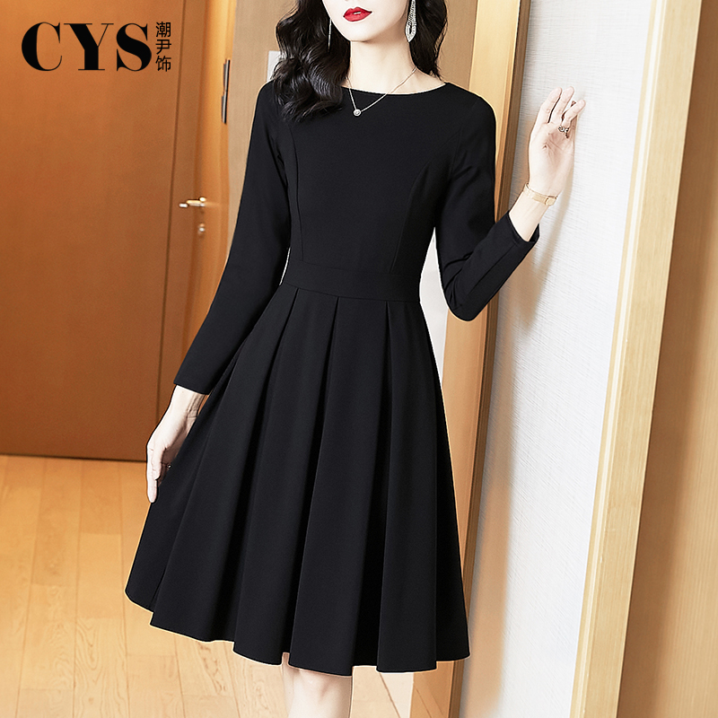 长袖 蝴蝶结领假两件连衣裙赫本风修身 2025秋新款 衣纱布菲墨夕