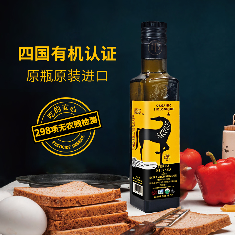 佰多力有机Terra DELYSSA特级初榨橄榄油250ml酸度≤0.3%饮拌餐减