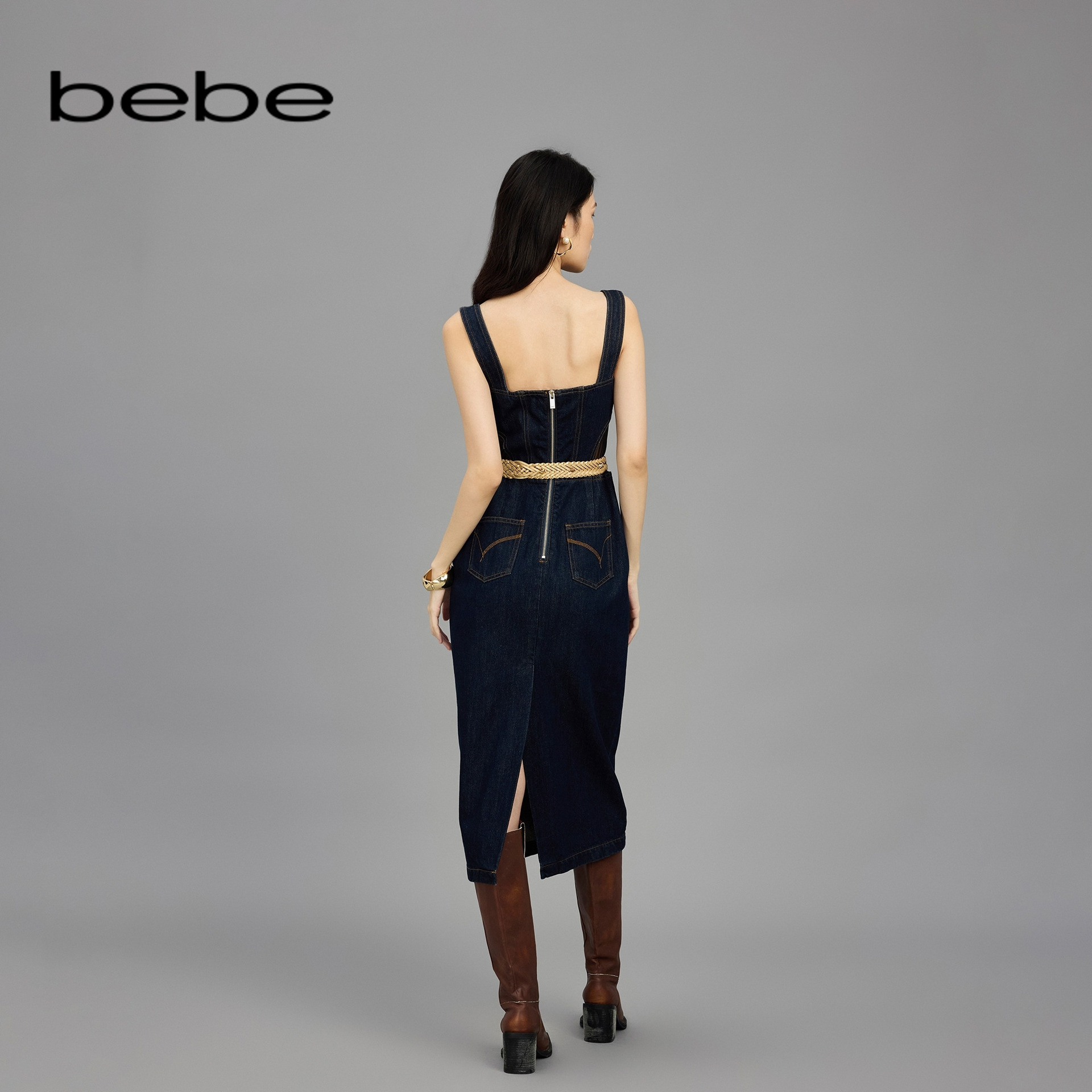 牛仔连衣裙150013 女士气质镂空网纱背带长款 bebe2025春季 新款